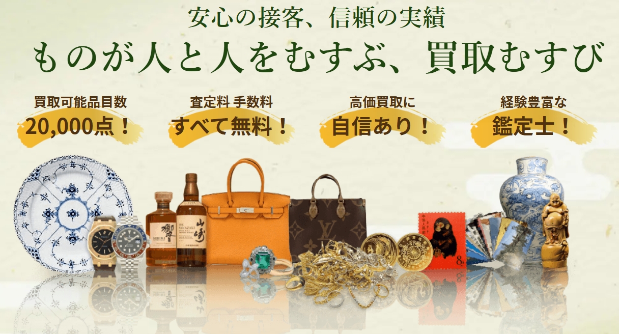 10位の買取むすびはブランド品や貴金属のほか、ゴルフクラブ・キャディバッグなどのゴルフ用品もまとめて査定できる総合買取店です。